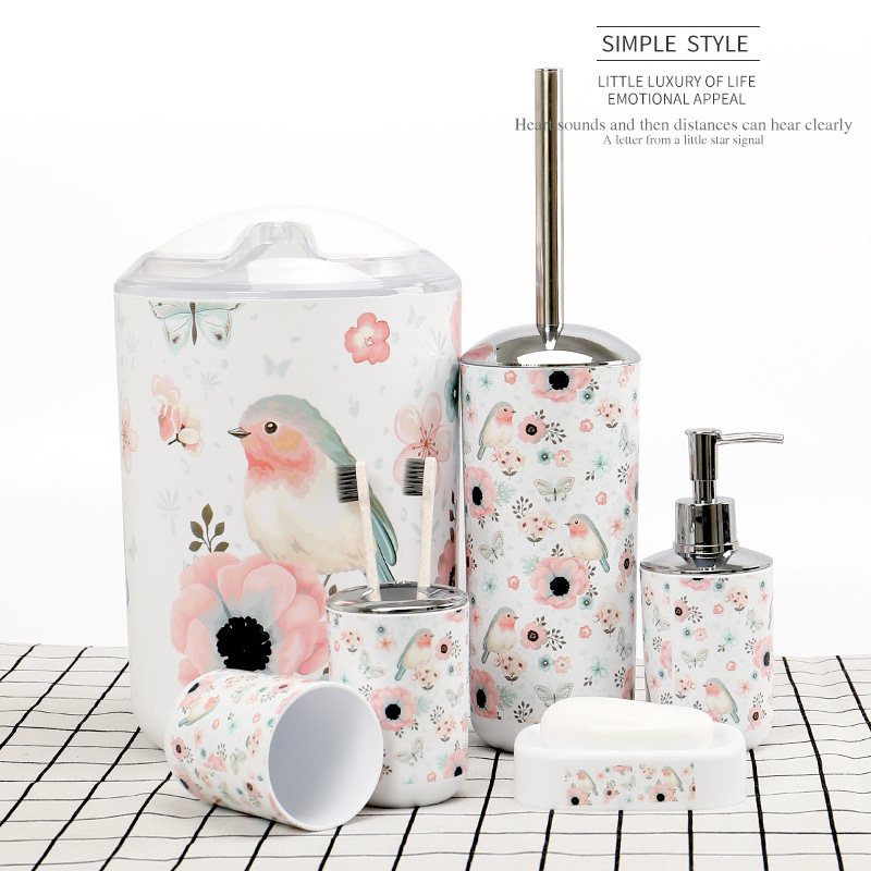 Yiwu Good Goods Printed European Plastic Flower And Bird Bathroom 6 Suite Toiletries Set Bathroom Set Bathroom Hotel Supplies -1006/34231